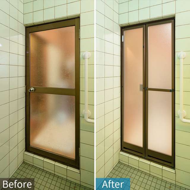 古くなった浴室のドアまたは折戸をカバー工法で新しい浴室折戸に交換できます